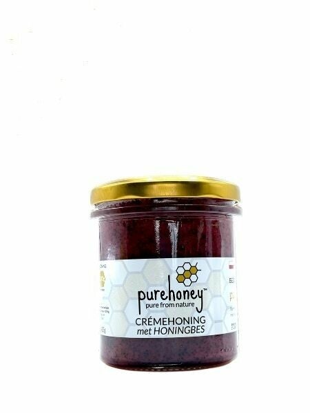 Honing met honingbes is een combinatie van crémehoning met gevriesdroogd honingbes. Tijdens het vriesdrogen verliesen de vruchen zijn smaak of goede eigenschappen niet, waardoor ze honing verrijken.